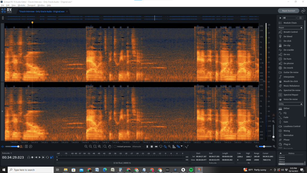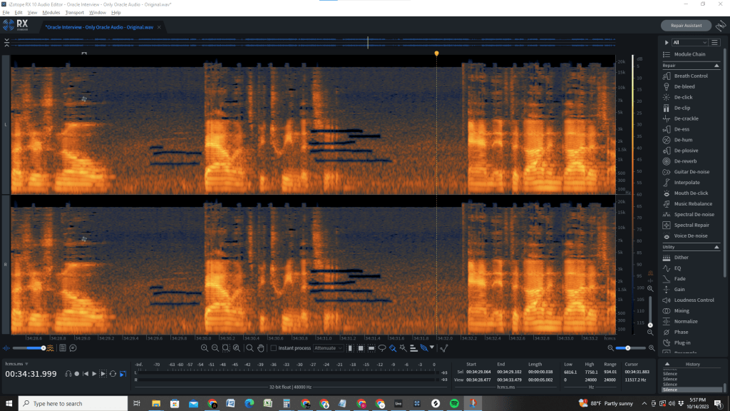 The interview with Oracle Hekataios is filled with cool information, which I’m doing my best to turn into M3 episode 4. It was also filled, unfortunately, with some background noise, like cats meowing. I didn’t realize it while we were recording, but it’s actually a bit loud and I really don’t want it to distract from his message. As such, I spent a lot of time seeking solutions.
