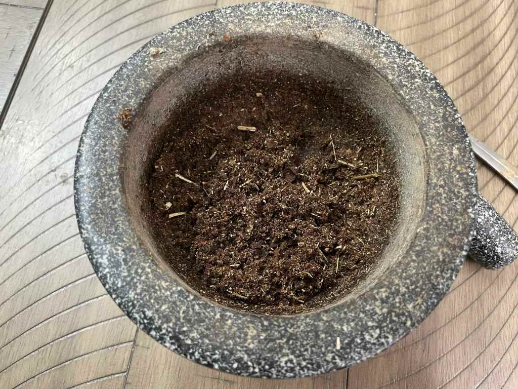 I’d tell you the recipe, but I honestly don’t remember. Frankincense, Myrrh, Mugwort, Jasmine, Rose… and I’m sure there was some other stuff.