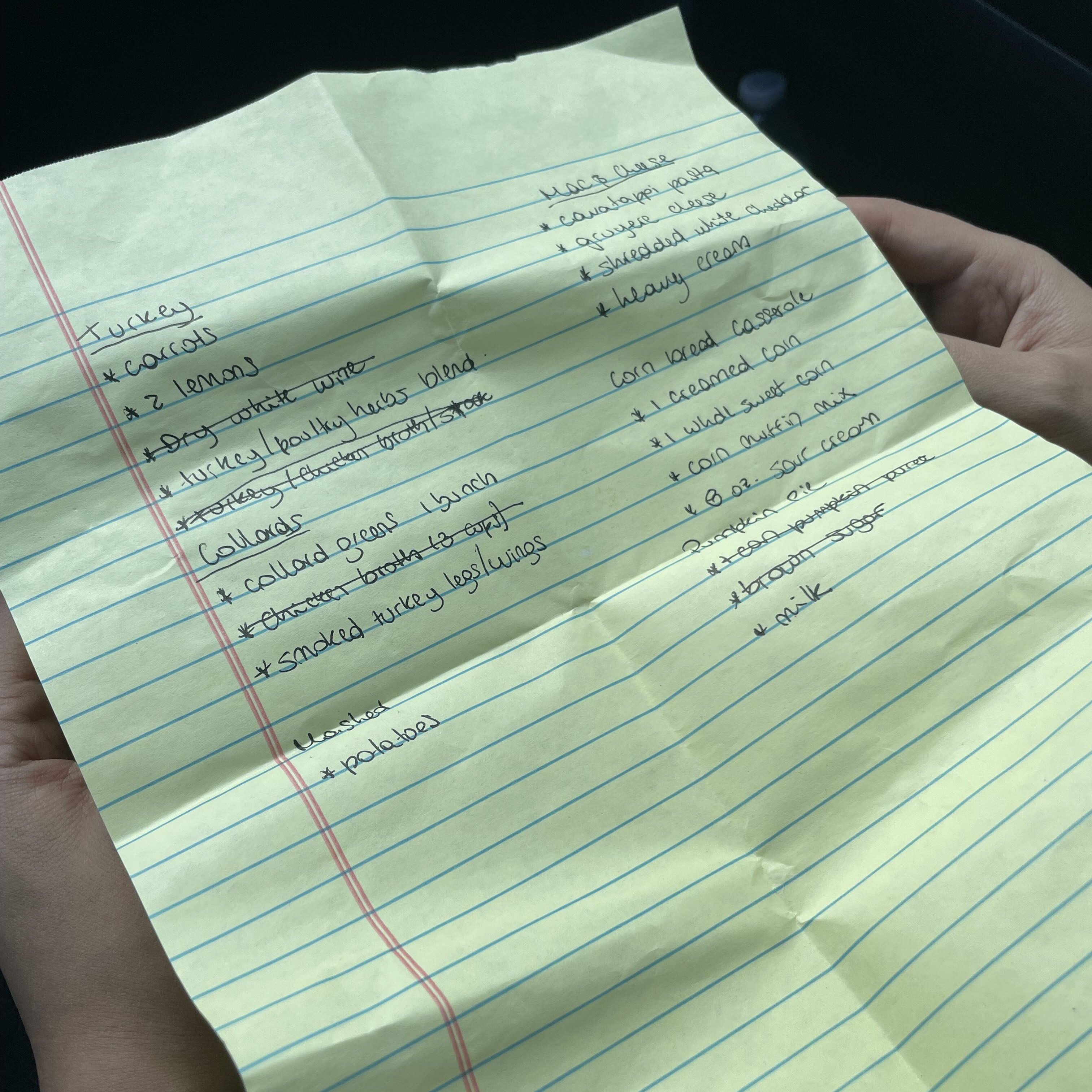 After that we headed to the grocery store and I caught a glimpse at Selene’s amazing hand-written list of all the ingredients that we need for Thanksgiving dinner.