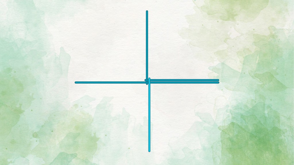Bend your second piece in the middle, then wrap it around the center of the first. It should be sticking out to the right hand side (or to the East if you want to continue the compass metaphor).