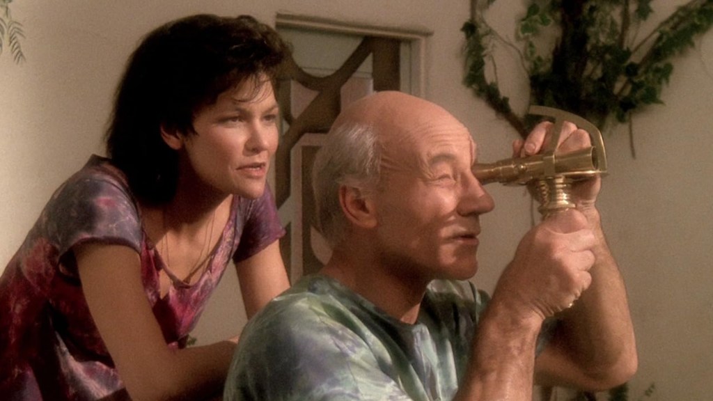 Picard wakes up, but he’s not on the Enterprise. He’s in bed… in some room… in a house. He’s being lovingly tended to by a woman who is overjoyed to see that he has finally woken up. He’s pretty startled, obviously, and requests to be returned to his ship.
