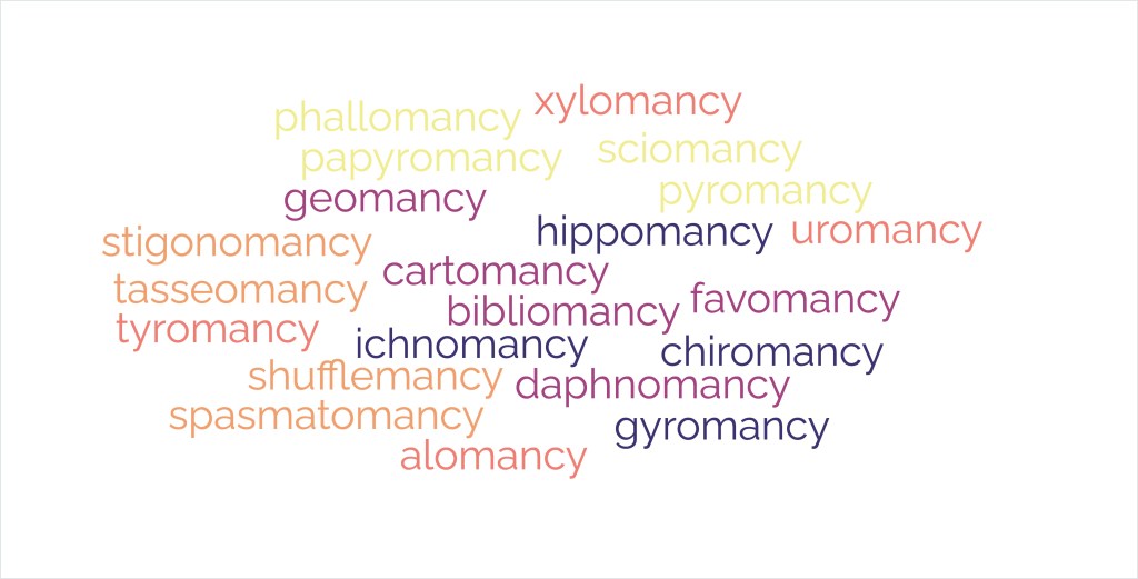 Different -mancies. Some weird. Some hilarious. Yes. Phallomancy.