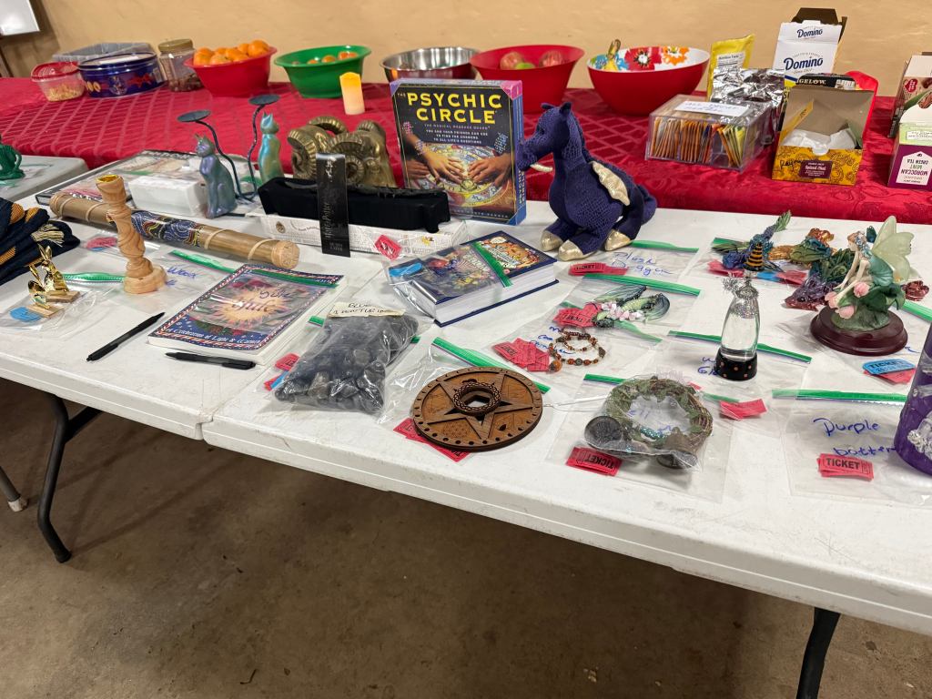 Tides has a raffle each year of donated items to help raise money. There’s usually pretty cool stuff: books, statues, divination tools, jewelry, crystals, decorations, and more.