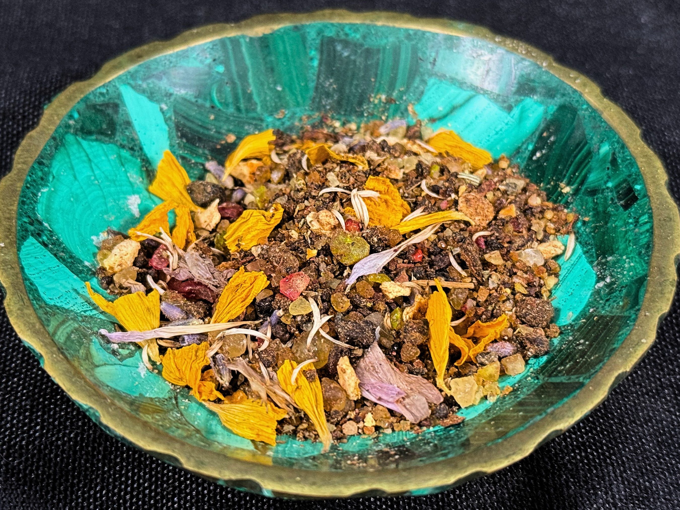 Tell me your intention and I will craft a custom incense blend just for you. This could be for money, job seeking, good health, relationships, as an offering to a specific deity, or any other purpose that you need. I will send you one tin of this loose incense. It may contain things like flowers, herbs, spices, barks, wood, resin, or any other items that I feel suite your energetic intention.